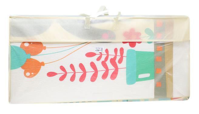 Коврик складывается «книжкой» и удобно переносится в комплектной сумке — идеально для дома и прогулок.