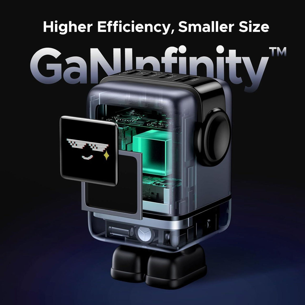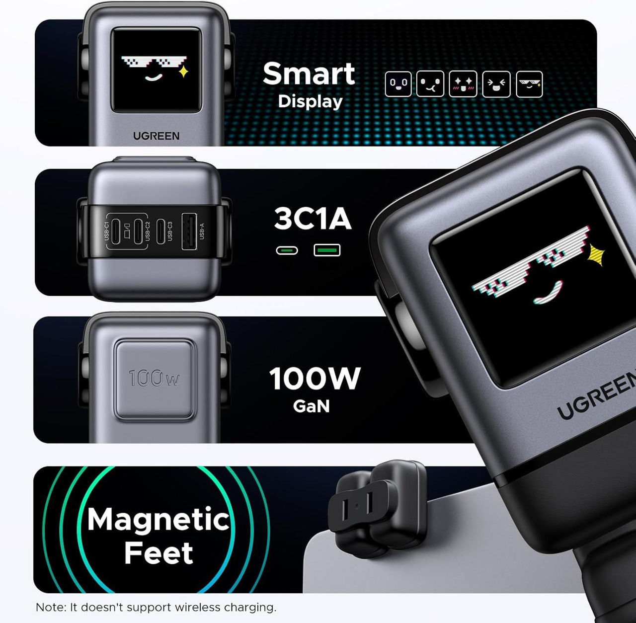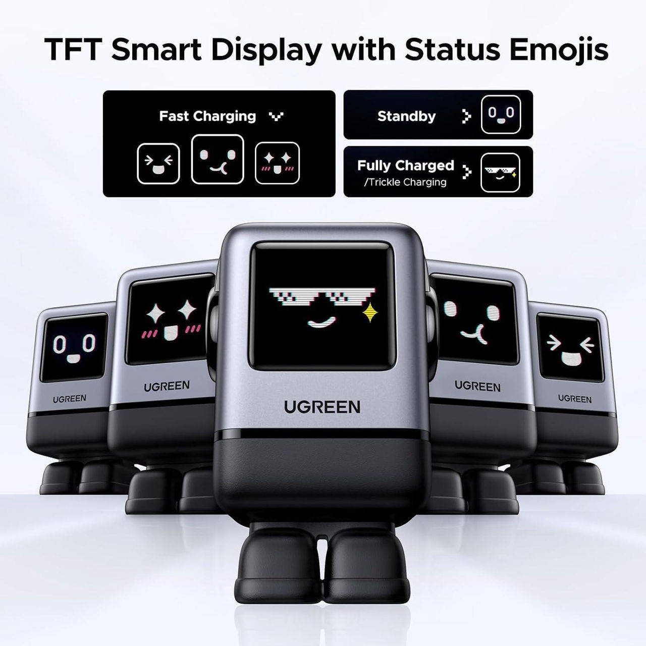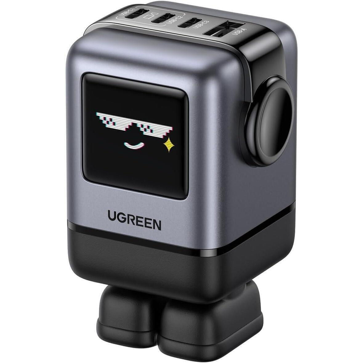 Зарядное устройство сетевое Ugreen 45515B Nexode Robot GaN Charger USB-A+2*USB-C 100W, Black