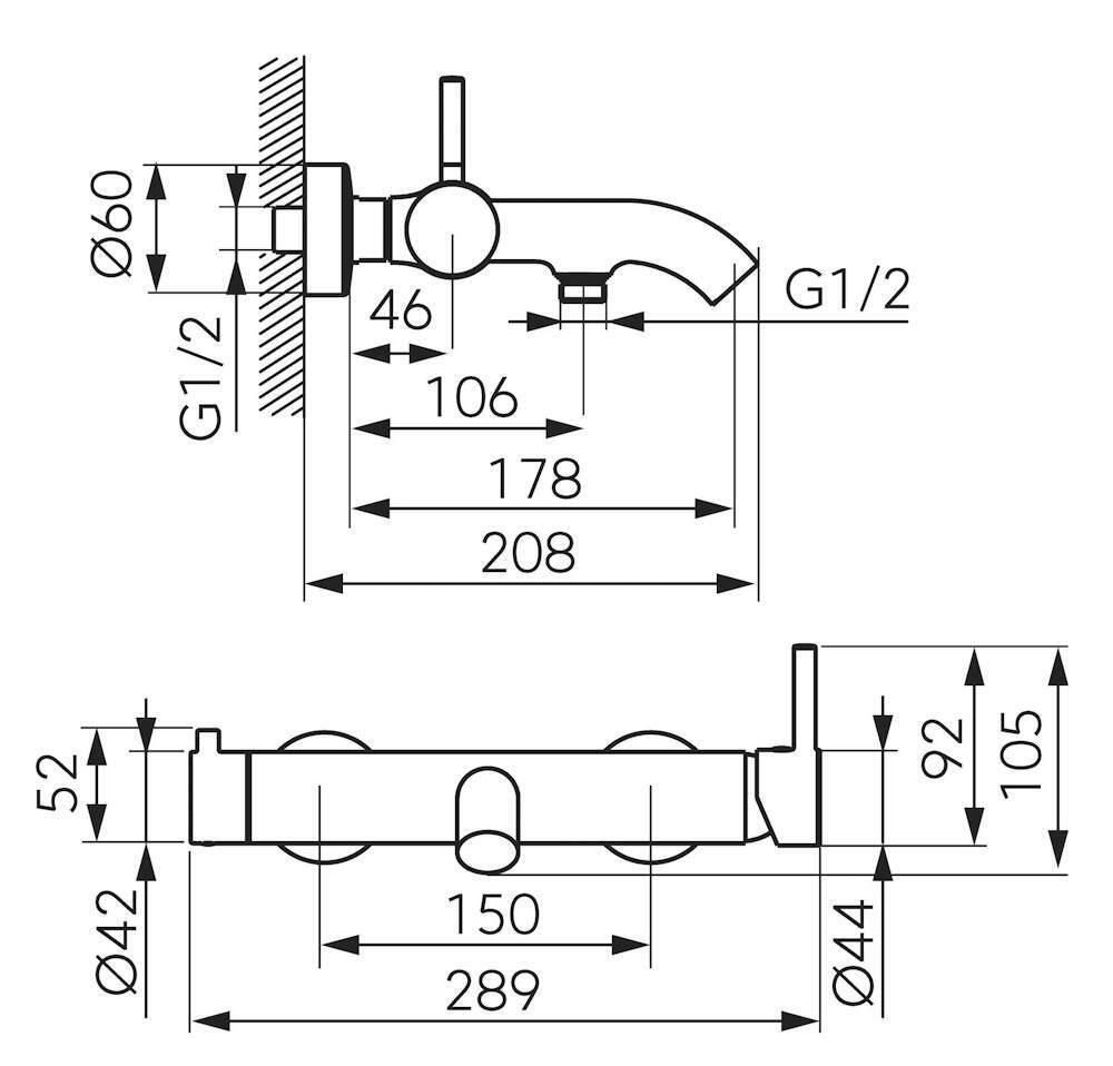 Тип: однорычажный / Тип монтажа: настенный / Назначение: для ванны / Материал корпуса: латунь