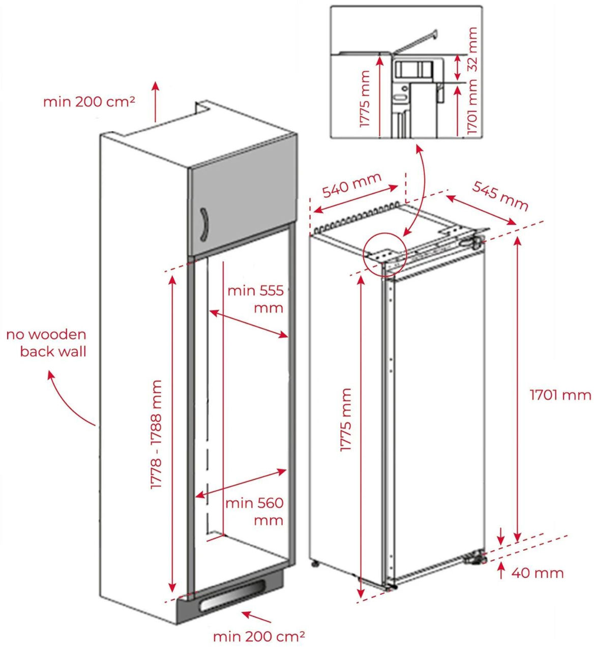 - Габариты (ВxШxГ), см 177,5x54x54,5