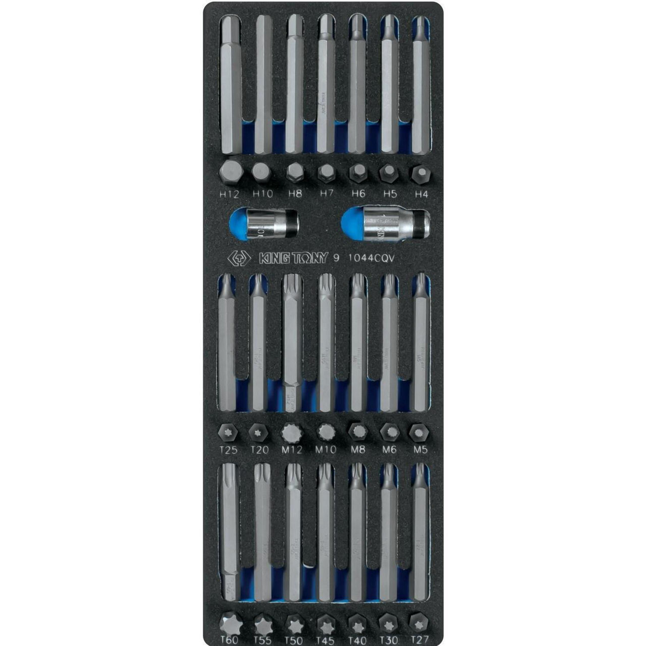 Set de tubulare, bite, duze King Tony Bituri Torx, hexagonale, caneluri 9-1044CQV 10 mm, 44 buc. (SPUMA)