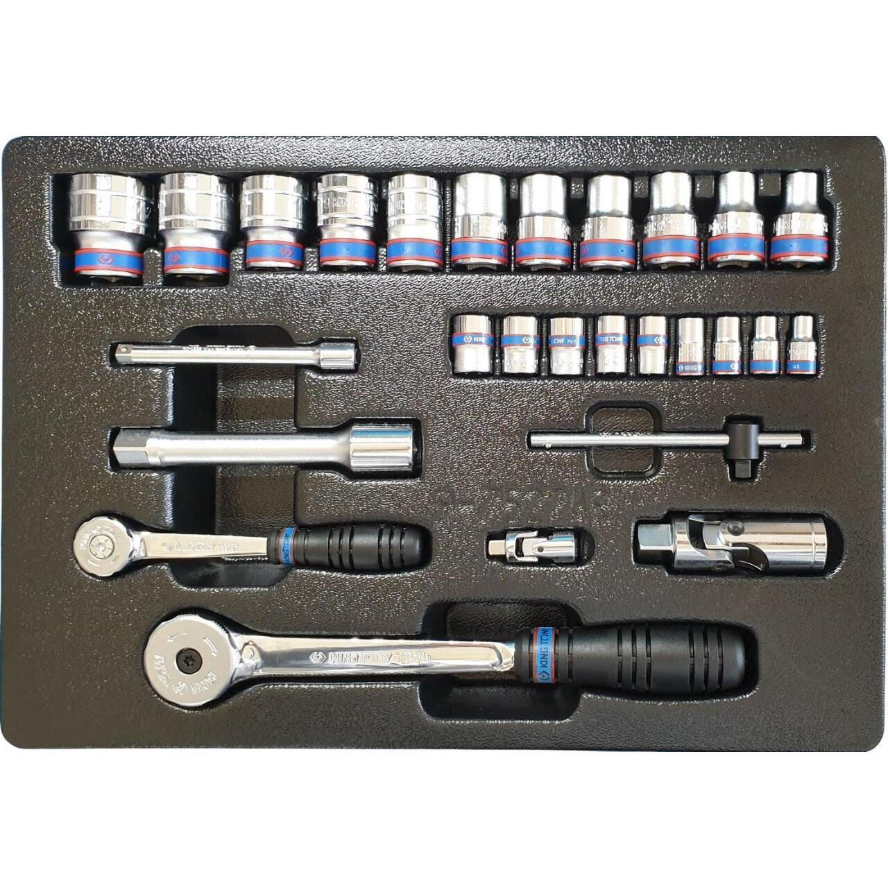 Набор ручных инструментов King Tony 7527MR набор 1/4" и 1/2" торцевых головок 6 гран., принадлежностей 27 пр.