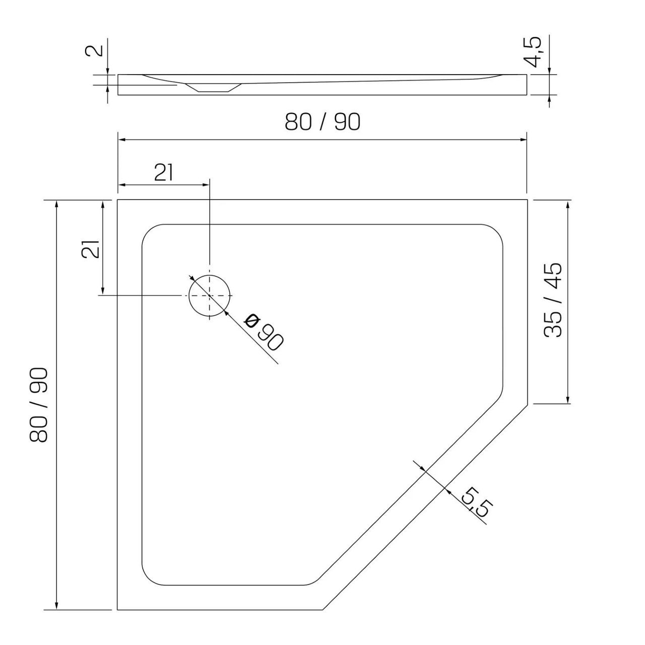 Форма: пятиугольный / Габариты (ВxШxГ), мм: 45x900x900 / Материал: акрил / Цвет: белый