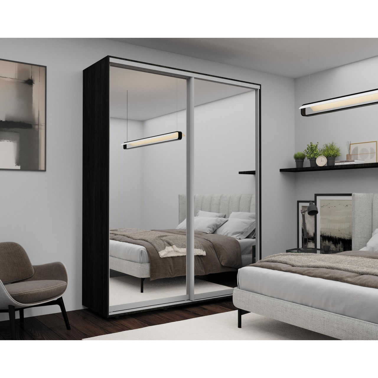 Шкаф Mobildor-Lux Aron-P 1.0m-1.8m uși glisante din PAL cu oglindă zebra (150x60x210H cm) Anthracite
