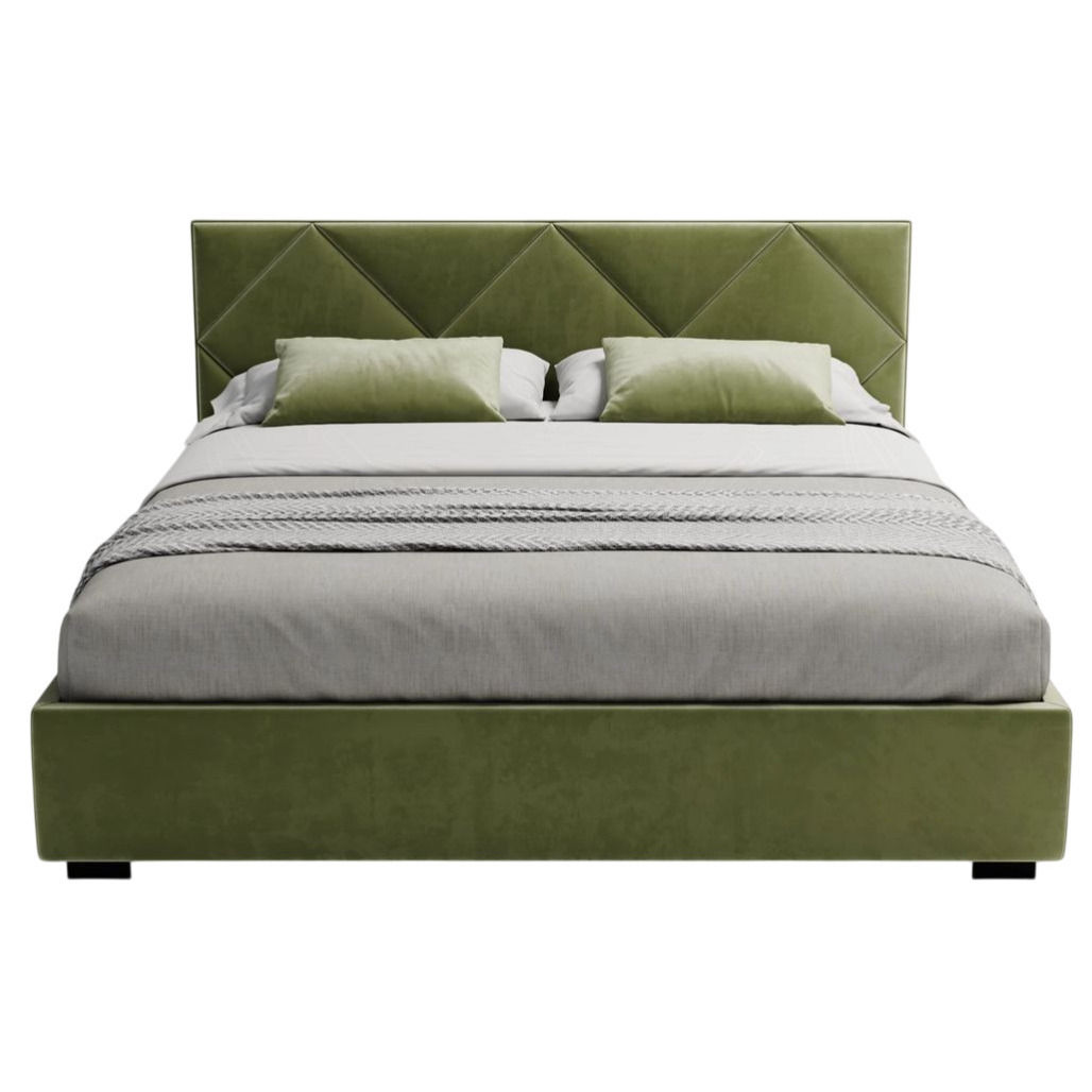 Тип: кровать / Материал корпуса: ДСП / МДФ / фанера / Материал покрытия: ткань / Размер спального места (ДxШ), см: 200x200