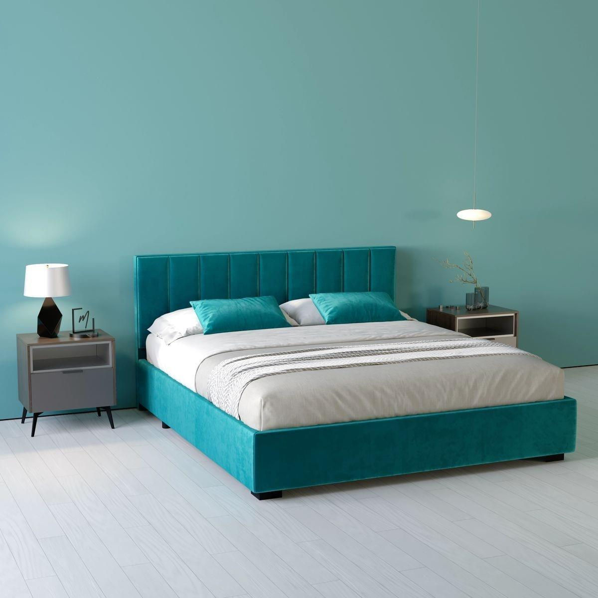 Тип: кровать / Материал корпуса: ДСП / МДФ / фанера / Материал покрытия: ткань / Размер спального места (ДxШ), см: 180x200
