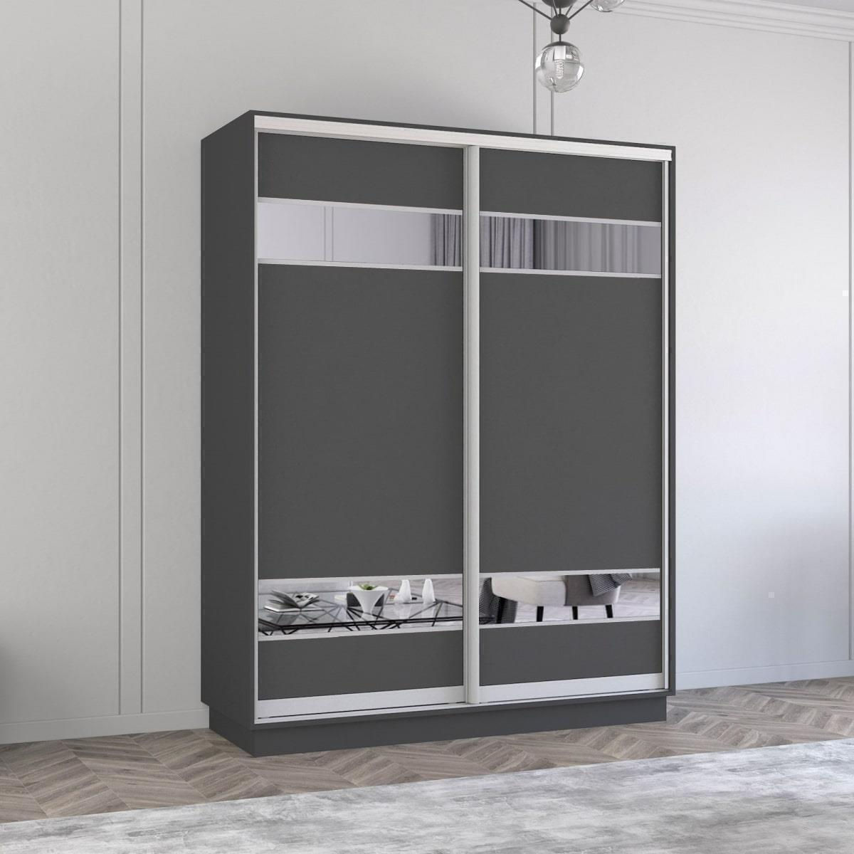 Шкаф Mobildor-Lux Aron-P 1.0m-1.8m uși glisante din PAL cu oglindă zebra (150x60x210H cm) Anthracite