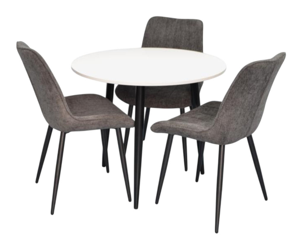 Количество стульев: 3 / Форма стола: круглая / Материал стола: ДСП / Материал стульев: ДСП / ткань