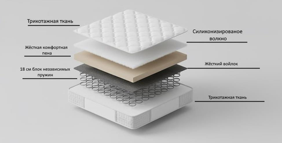 Тип: пружинный / Наполнитель: пружины Pocket Spring / термобонд / термо-войлок / пенополиуретан / нанофайбер / Внешняя поверхность: трикотаж / Ширина, см: 180