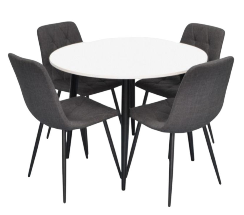 Тип стола: линейная / Количество стульев: 4 / Форма стола: круглая / Материал стола: ДСП
