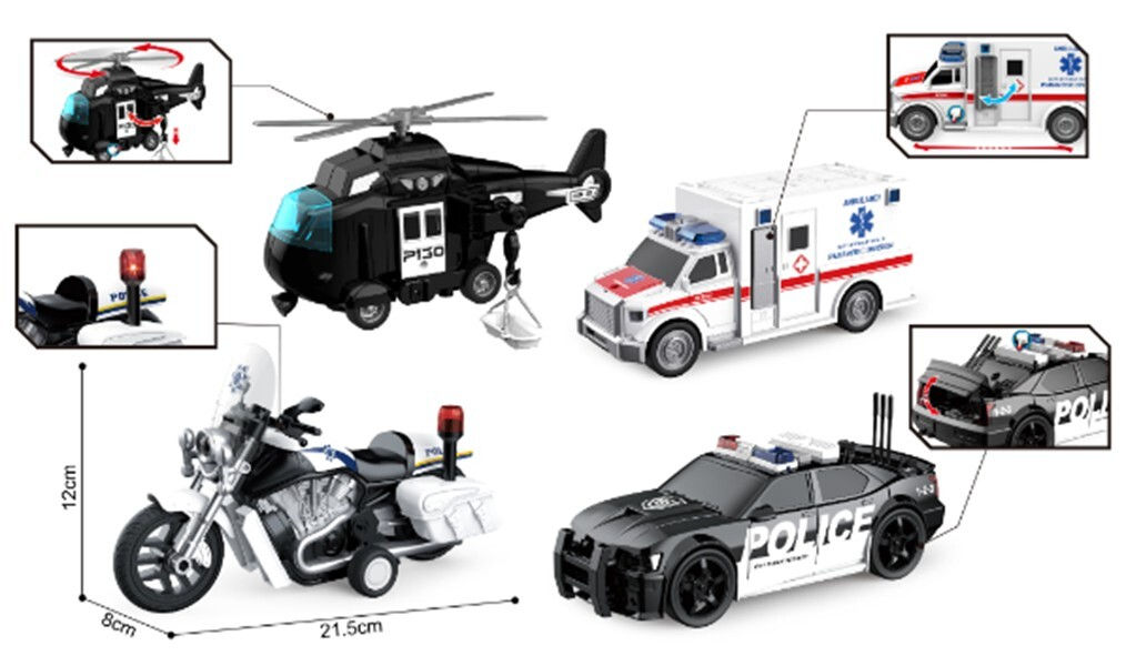 - Model WY500-4 1:20 Set vehicule de poliție cu fricțiune (lumini/sunete)