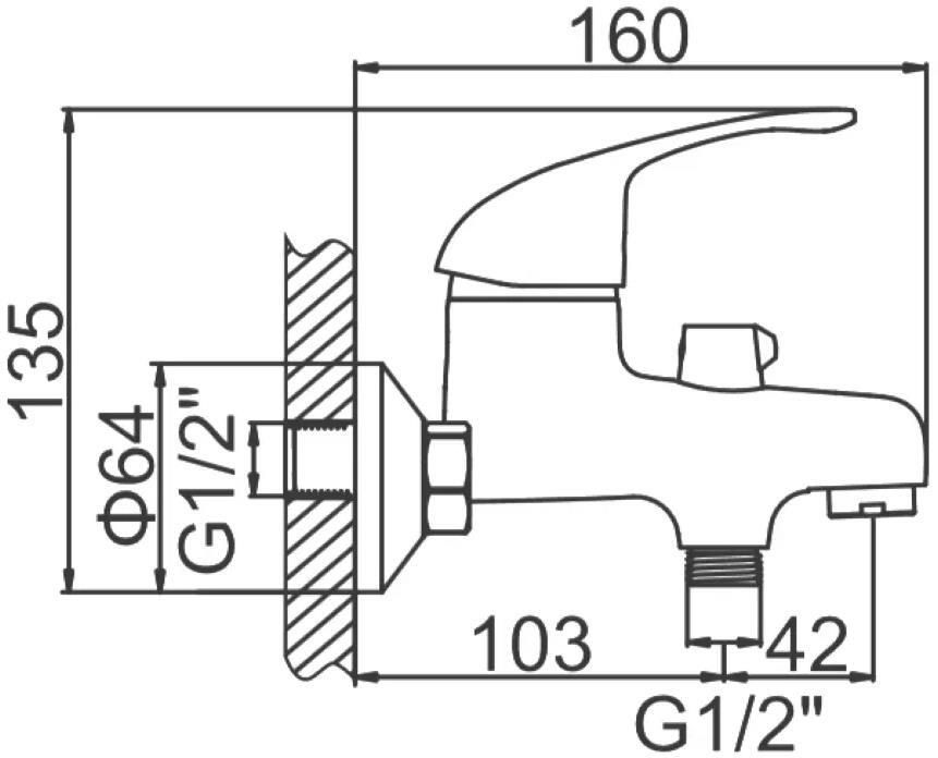 Тип: однорычажный / Тип монтажа: настенный / Назначение: для ванны / Переключатель на душ: да