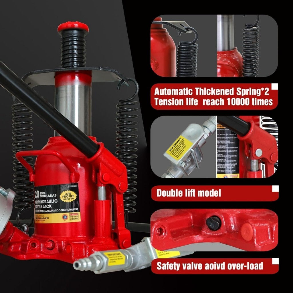 Домкрат Torin TQ20006D, бутылочный пневмагидравлический, низкий, 180-320мм. 20т.