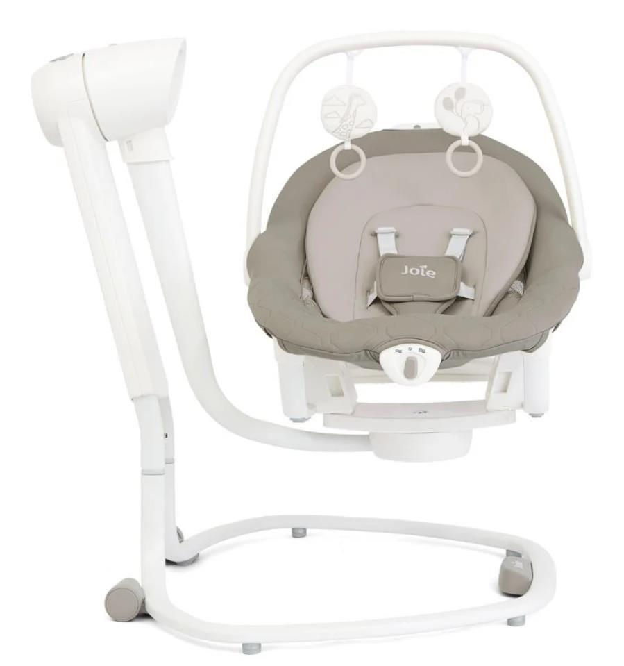 Joie Serina 2in1 - электронные качели 2в1, колыбелька снимается и ее можно использовать отдельно как шезлонг. Колыбель вращается на основании на 90 градусов влево и вправо, таким образом качания могут быть как поперечными, так и продольными. Спинка самой колыбели имеет 3 положения, для комфортного сна, отдыха и сидения. Скорость укачивания - 6 уровней. Чтобы переместить качели, достаточно встать сзади, наклонить на себя конструкция и вести за собой на колесиках в нужное место.