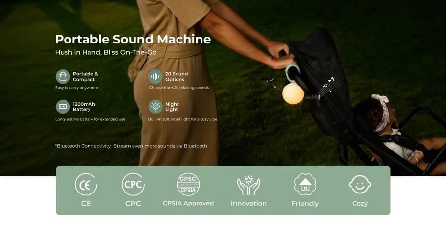 Ультрапортативный дизайн — легко крепится к кроватке, коляске или сумке с помощью крючка