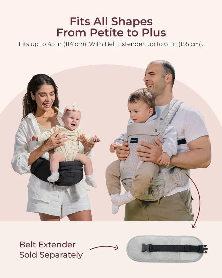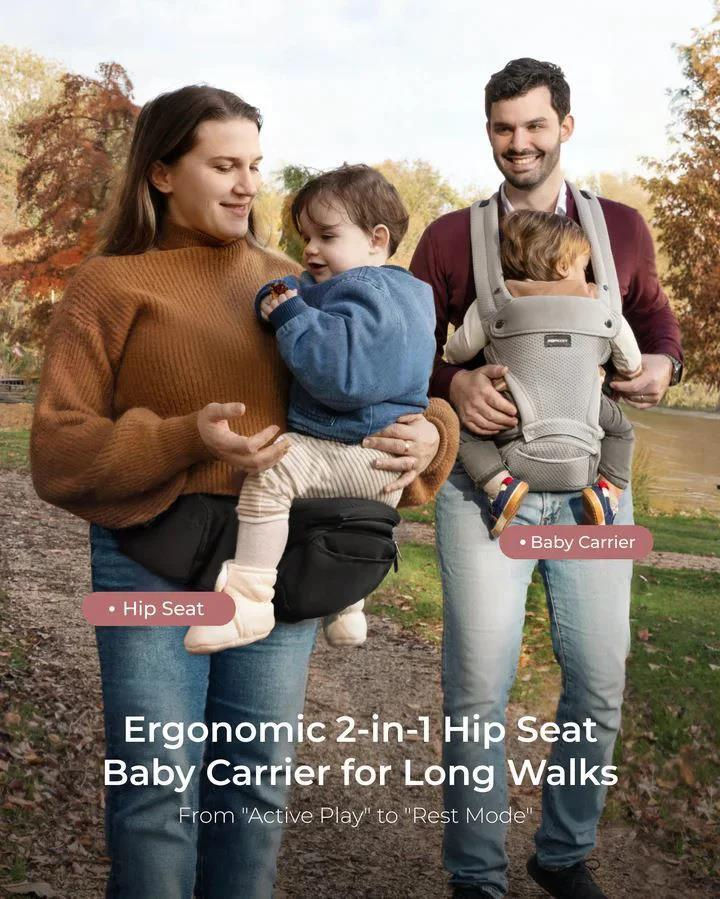 Широкое и устойчивое сиденье удерживает ребёнка в естественной позе сидя, не создавая давления на ножки, предотвращая дискомфорт, типичный для классических кенгуру. Х-образные лямки и 3D-поясничная поддержка значительно снижают нагрузку на спину и поясницу родителя, позволяя комфортно носить ребёнка дольше.