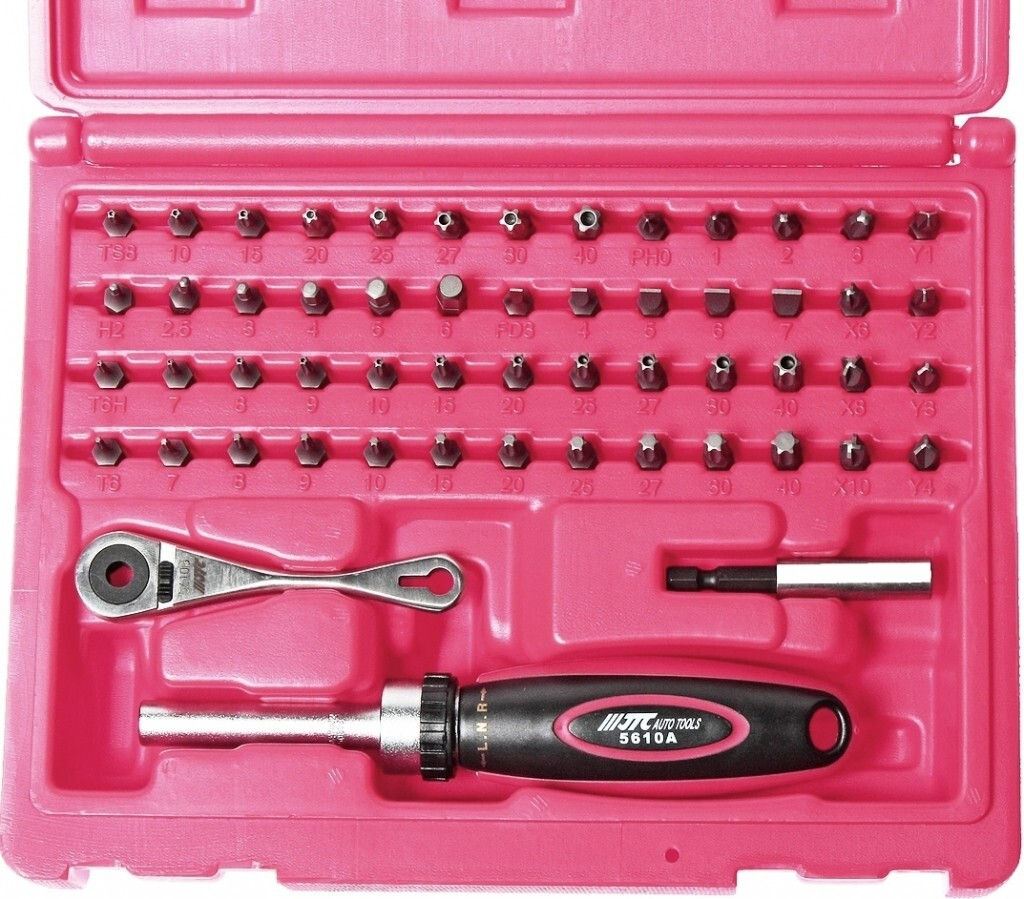 - Модель JTC-5610 биты с мини-трещоткой и отвёрткой с храповым механизмом, 55 предметов