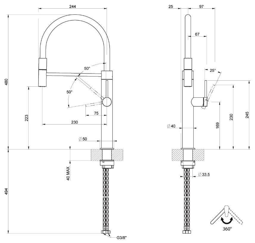 - Длина излива, мм 230