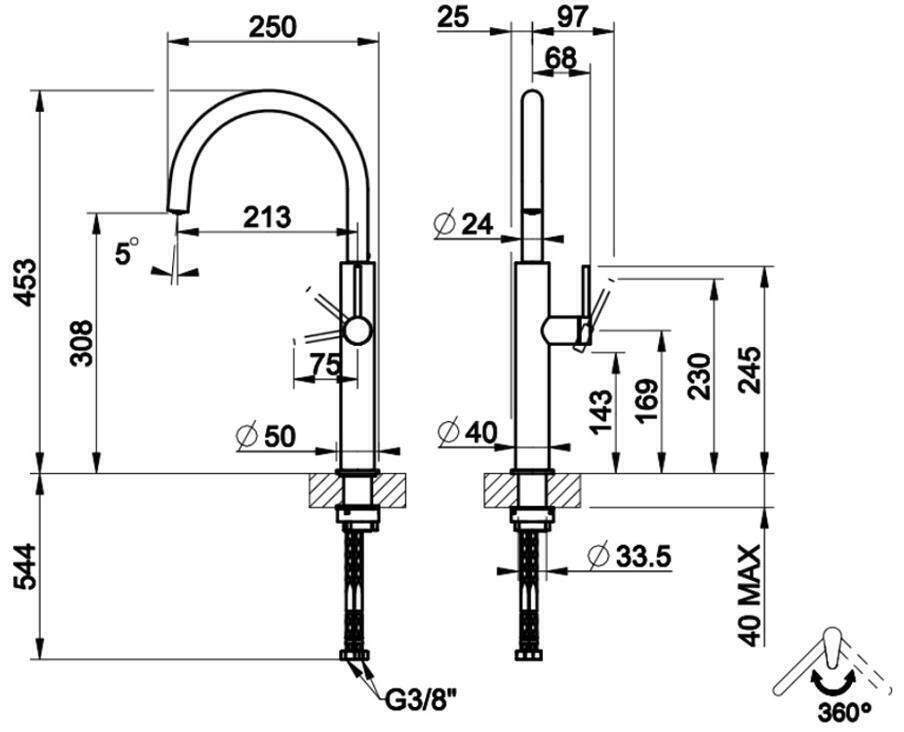 Тип: однорычажный / Назначение: кухонный / Материал корпуса: нержавеющая сталь