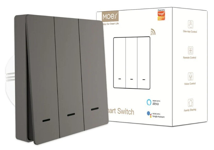 Тип: умный выключатель / Количество кнопок: 3 / Управление со смартфона (Умный Дом): да / Материал: поликарбонат