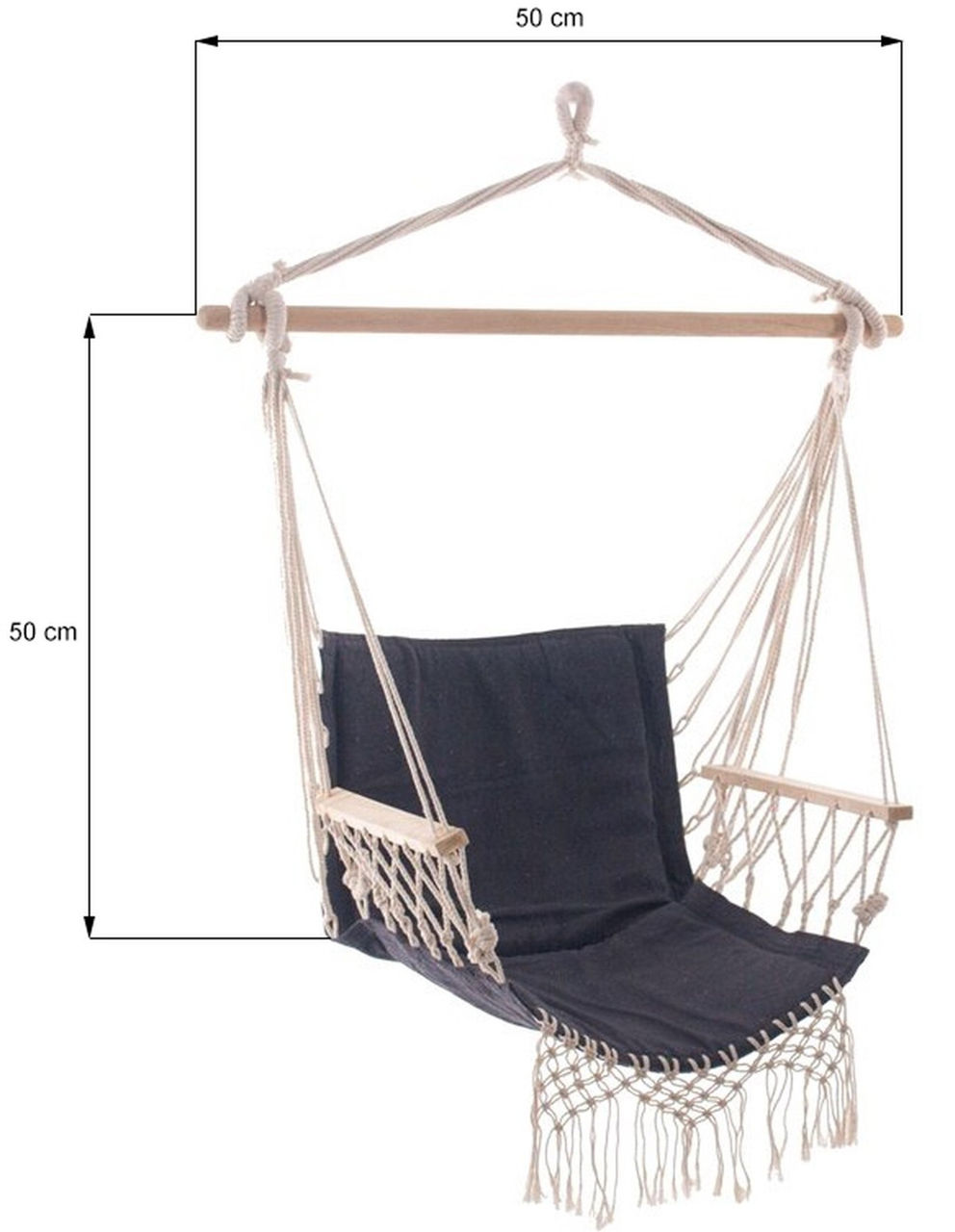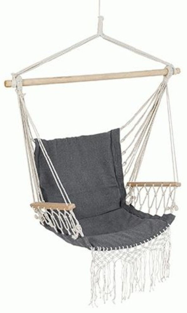 Тип: гамак-кресло / Комплектация набора: 1 кресло-гамак с подлокотником 1 съемная подушка / Материал: дерево / хлопок / Цвет: серый