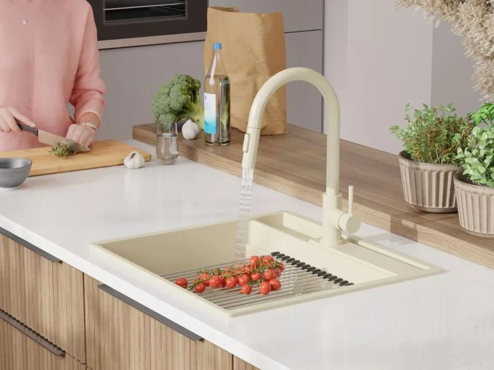 Мойка кухонная Primagran Oslo 60 Pocket Multilevel Beige + accesorii 530x580 MOCKW
