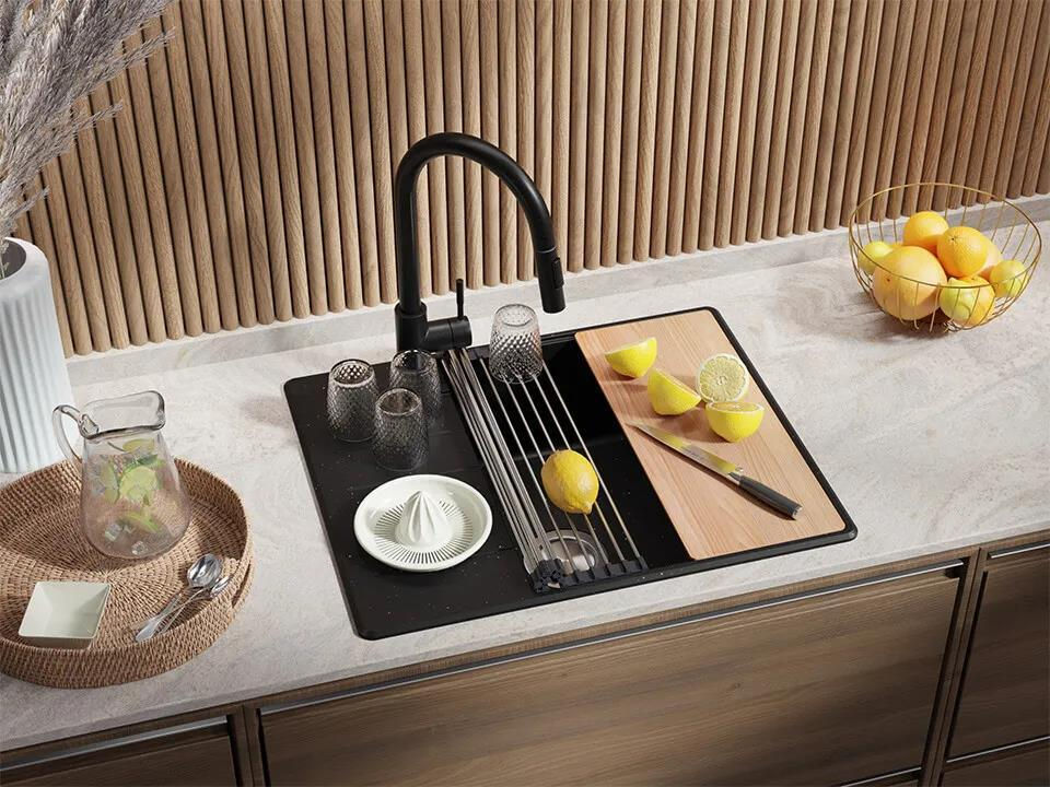Мойка кухонная Primagran Copenhagen 620-50 Top Black metallic + accesorii 500x620 MKIKM