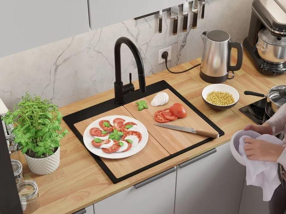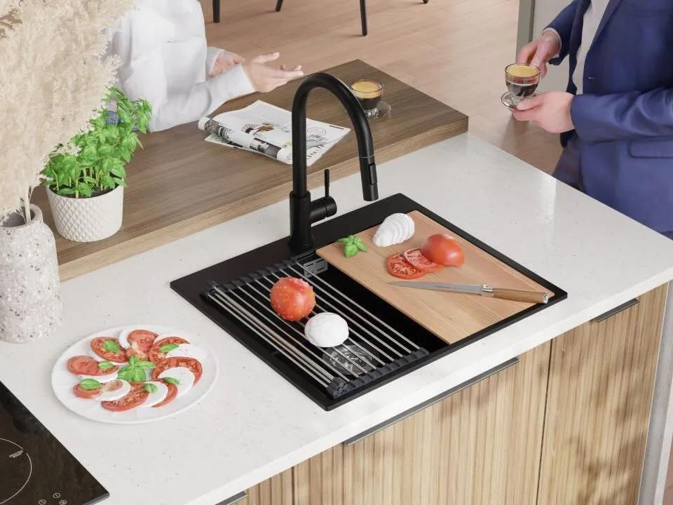 Мойка кухонная Primagran Oslo 60 Top Black + accesorii 530x580 MONKC