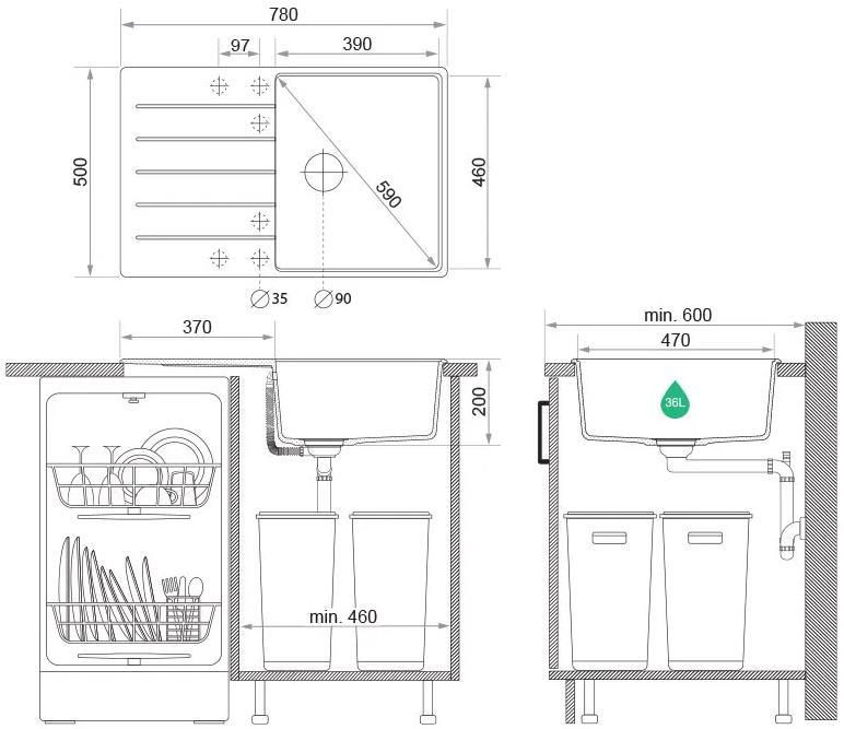 Мойка кухонная Primagran Copenhagen 780-50 Top Black + accesorii 500x780 MKHKC