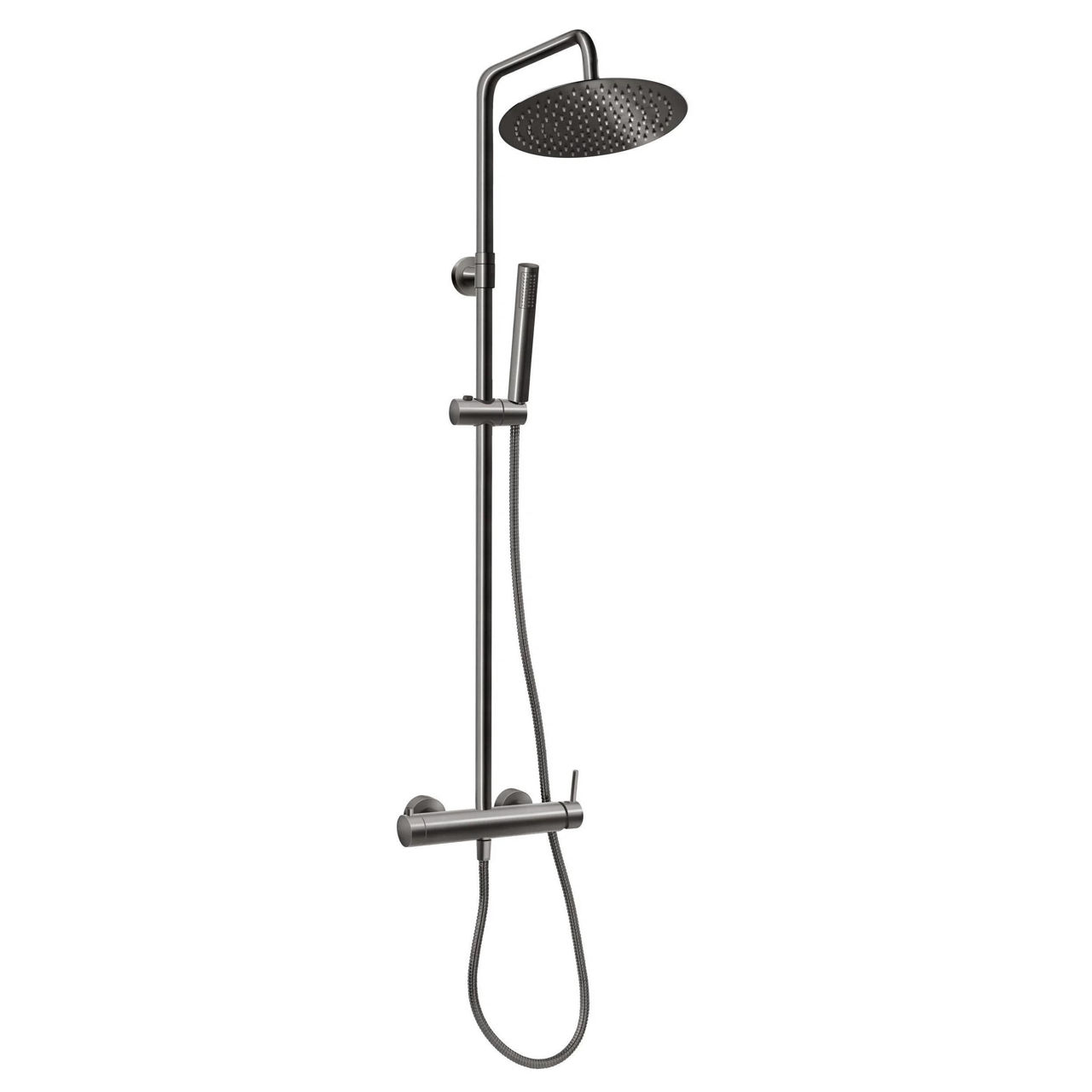 Тип монтажа: настенный / Материал покрытия: хром / Комплектация набора: верхний душ;душевой шланг;смеситель / Цвет: серый