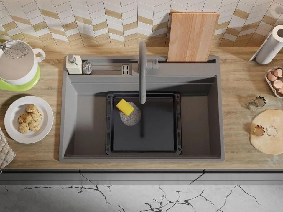 Мойка кухонная Primagran Oslo 80 Pocket Multilevel Grey + accesorii 530x780 MOHKW