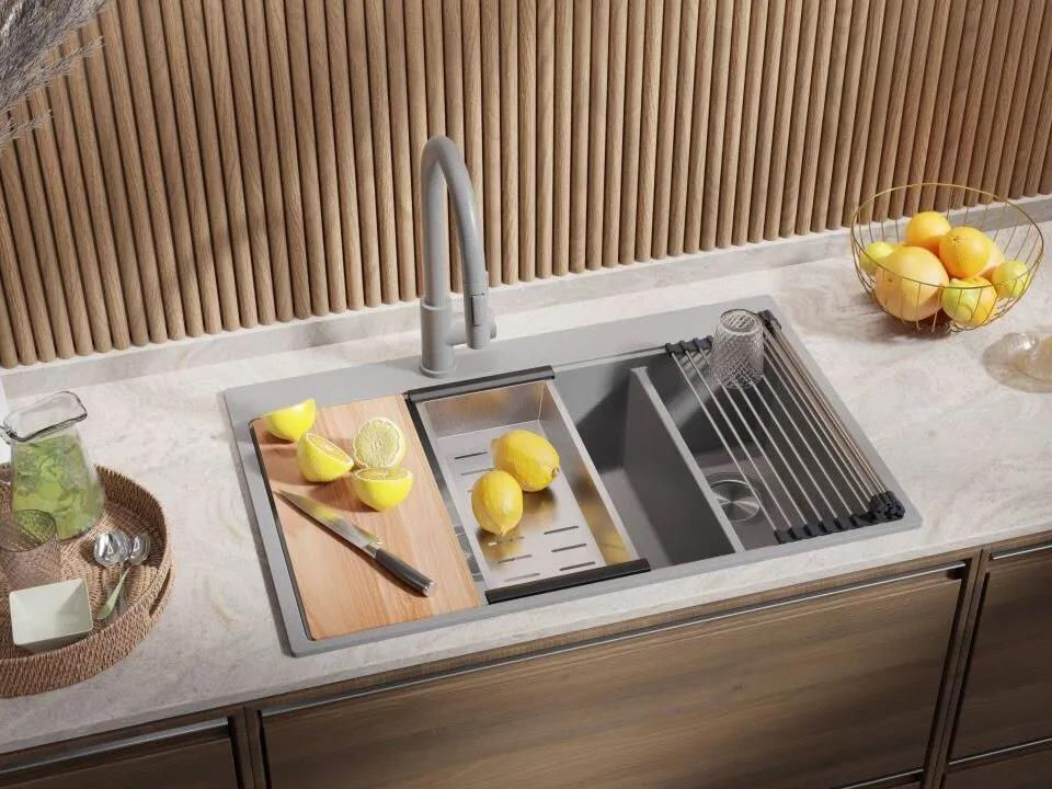 Мойка кухонная Primagran Oslo 80 Duo Top Grey + accesorii 530x780 MOVKS