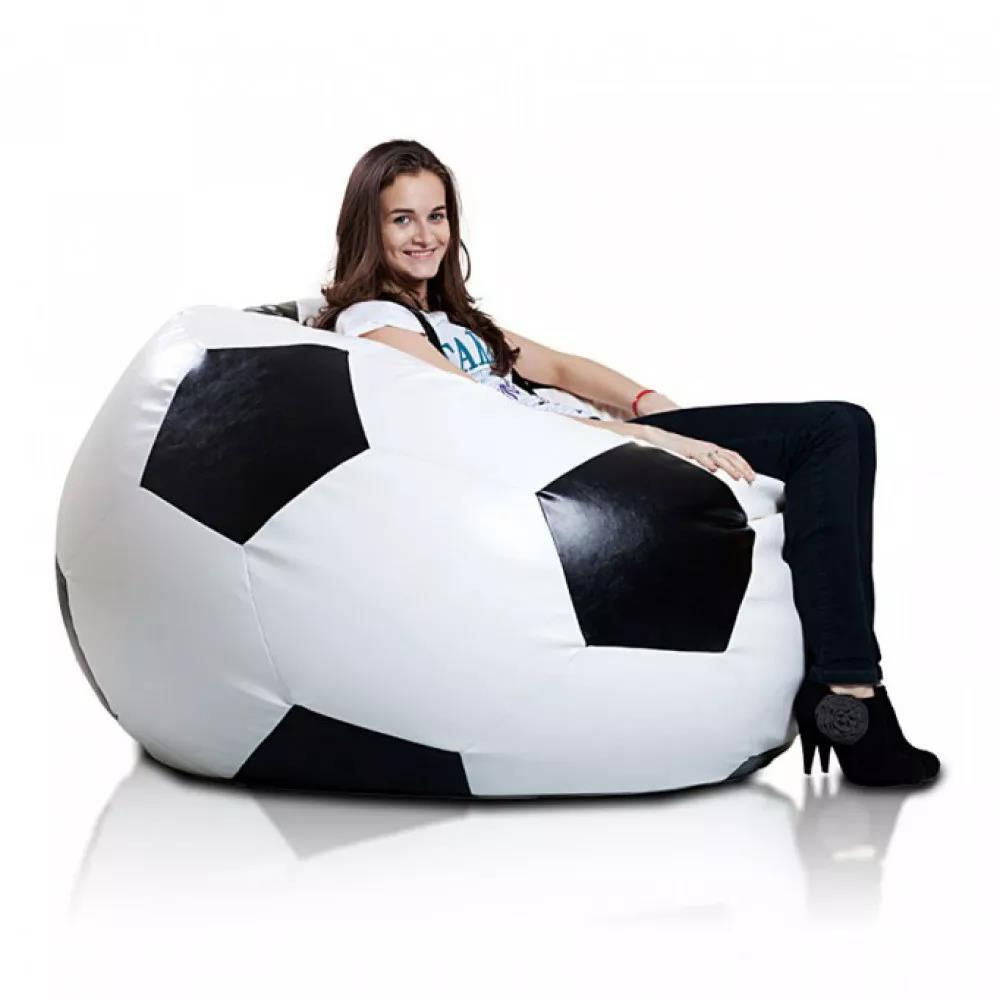 Кресло-мешок BeanBag BM6016, Mяч из экокожи Ares, XL, белый с черным