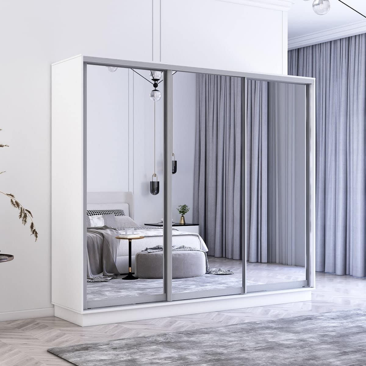 Шкаф Mobildor-Lux Fox uși glisante din oglinzi (250x60x200H cm) Alb