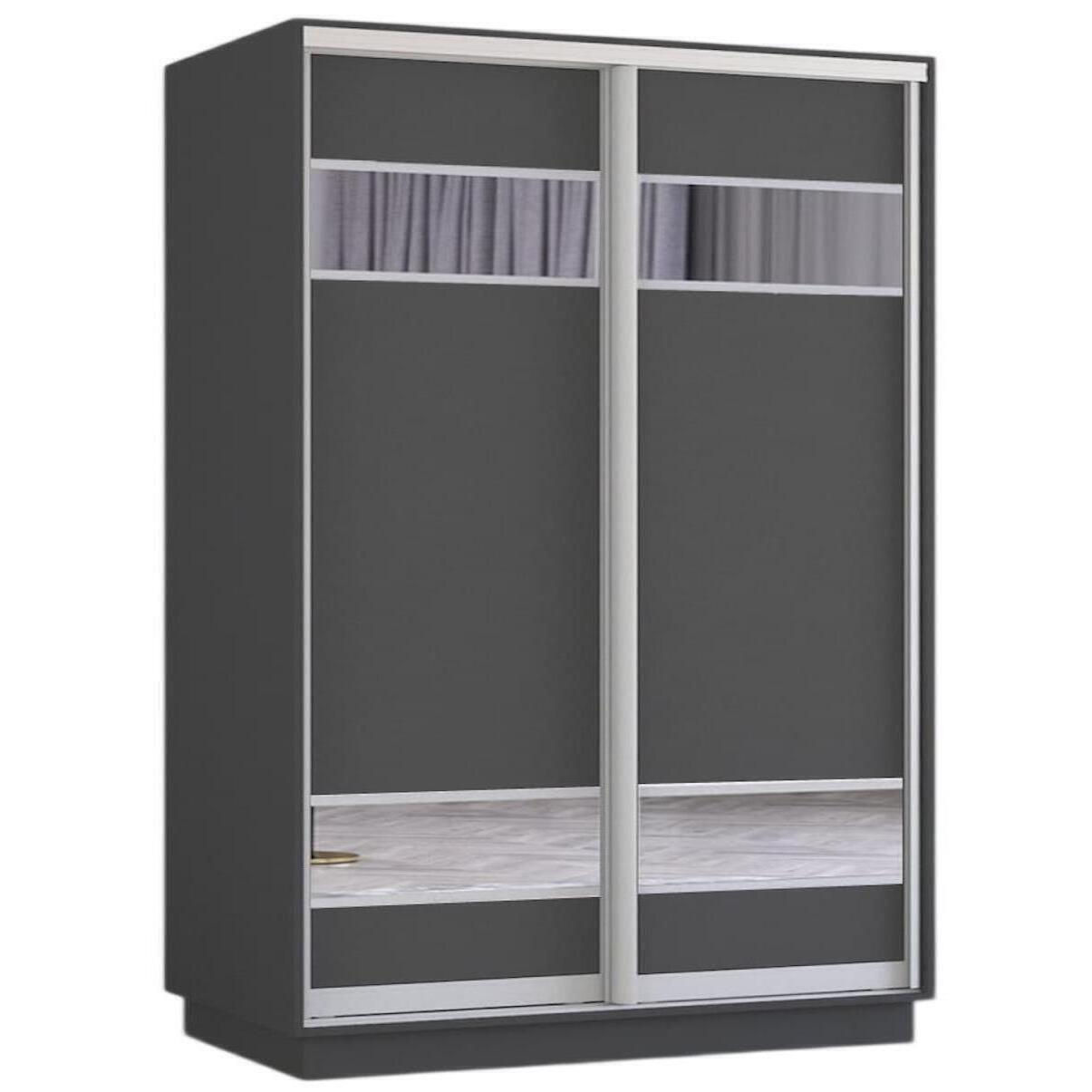 Шкаф Mobildor-Lux Fox uși glisante din PAL cu elemente din oglindă (160x60x220H cm) Anthracite
