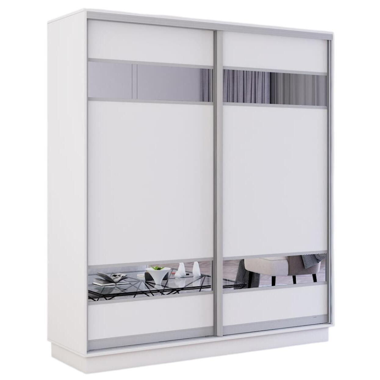 Шкаф Mobildor-Lux Fox uși glisante din PAL cu elemente din oglindă (180x60x200H cm) Alb