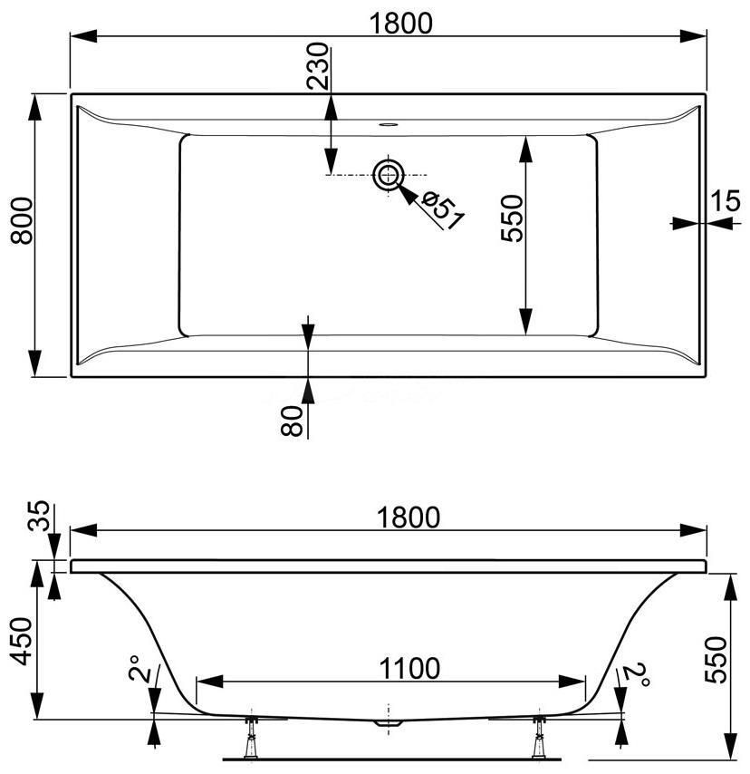 - Модель Veronela 1800x800 акрил, прямоугольная