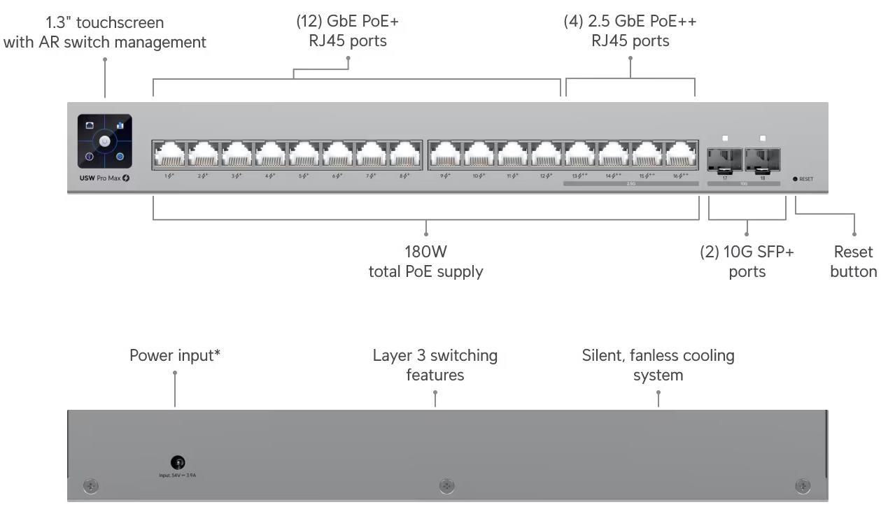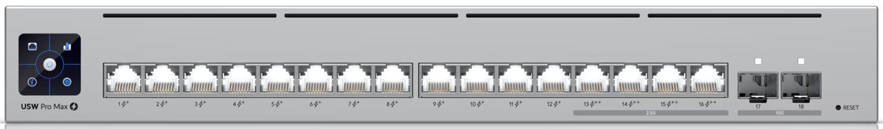 WAN: 10/100/1000 BASE-TX Ethernet / Максимальная скорость LAN портов, Мбит/с: 1000 / Количество LAN портов, шт.: 16 / Наличие РоЕ: да