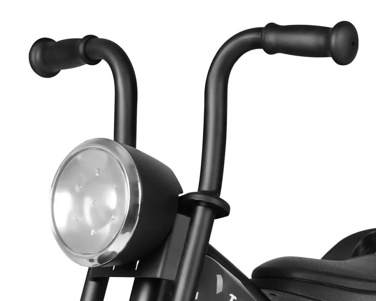 Вторая кнопка на фонаре отвечает за звуковые эффекты: звук запуска двигателя и звук выключения сигнализации. В задней части велосипеда имеется контейнер для игрушек.