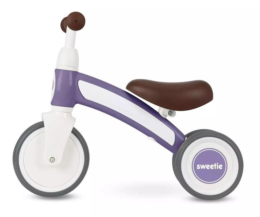 У Sweetie задние двойные колеса - всего их 3, они обеспечивают исключительную устойчивость, шины из пены EVA бесшумны и позволяют использовать транспортное средство как дома, так и на улице. Регулируемый руль и седло позволяют подогнать автомобиль под рост ребенка. Обтекаемая форма снижает сопротивление воздуха, что приводит к более высокой скорости движения. По правилам физики, чем быстрее движется транспортное средство/велосипед, тем легче ему сохранять вертикальное положение. Мягкое и профилированное седло и нескользящие ручки обеспечивают комфорт и удобство использования.