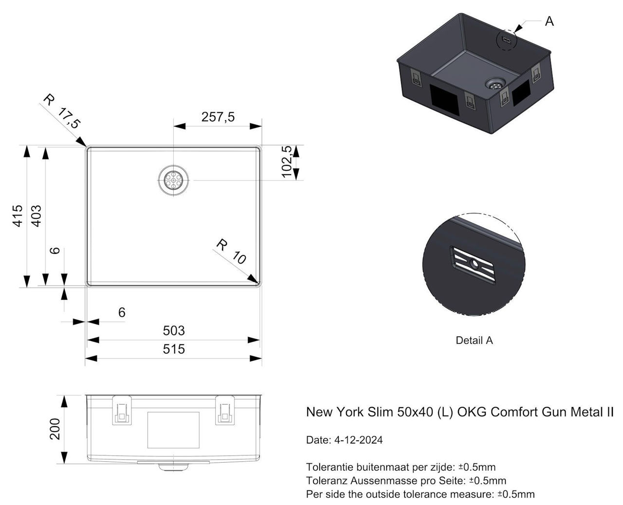 Materia primă: inox / Suprafaţă: inox / Numărul de vase: 1 / Gaură de scurgere: da