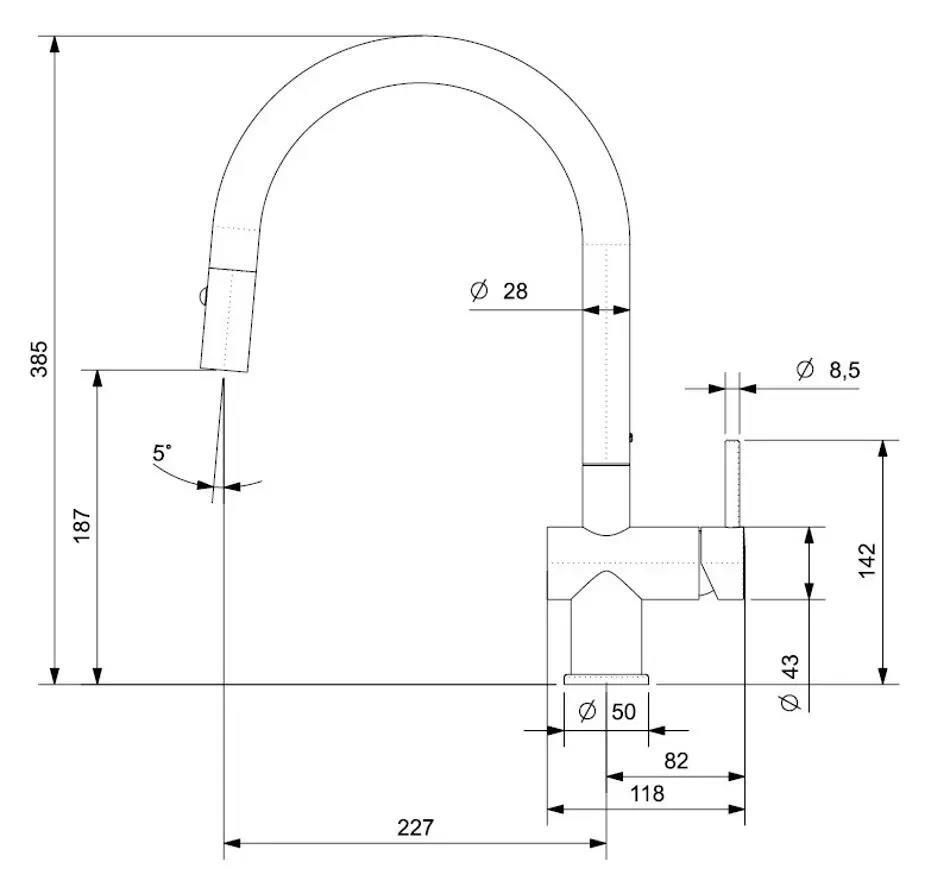 - Длина излива, мм 227
