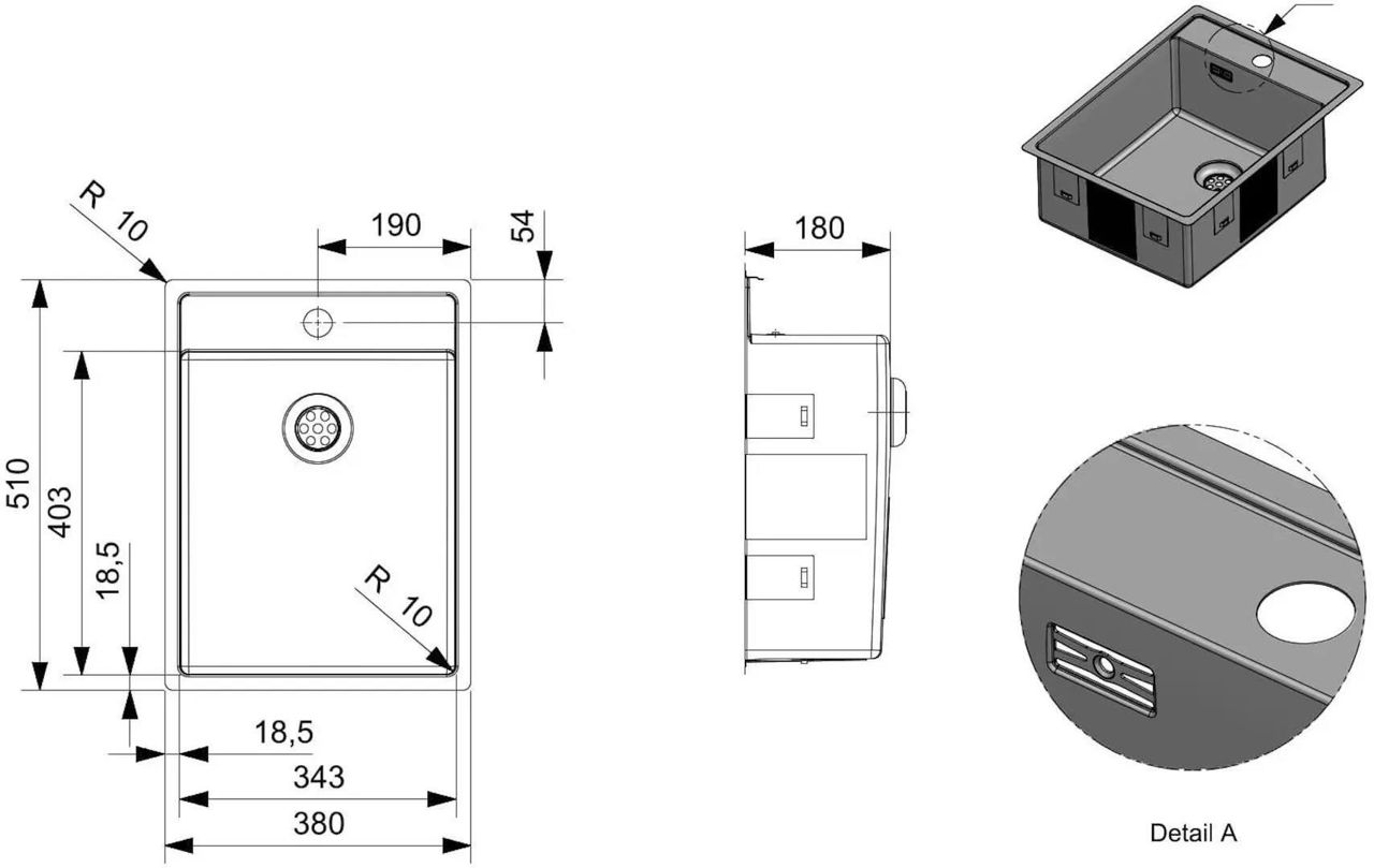 - Dimensiunile chiuvetei, cm 18x34,3x40,3