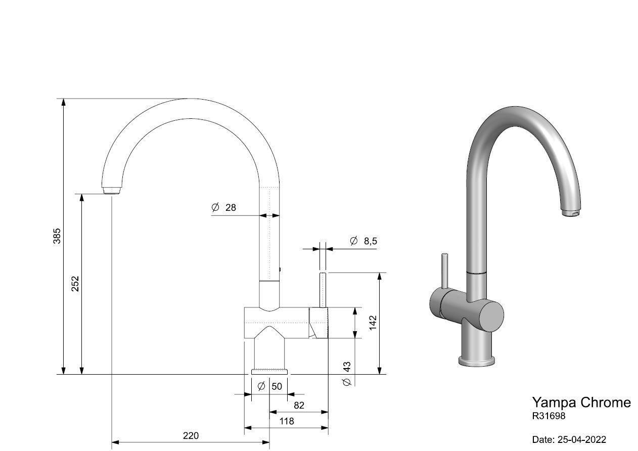 - Длина излива, мм 220