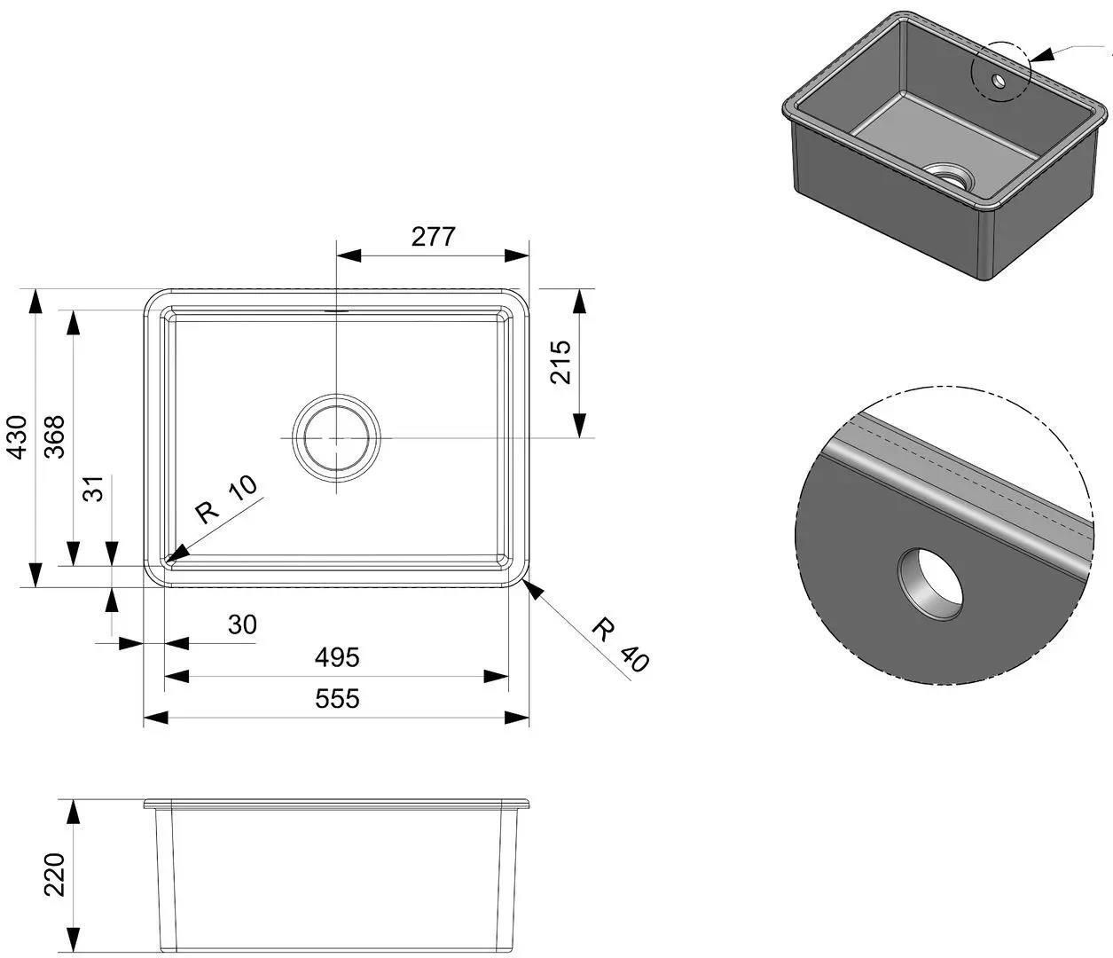Кол-во чаш: 1 / Расположение чаши: центр / Сливное отверстие: да / Цвет: нержавеющая сталь