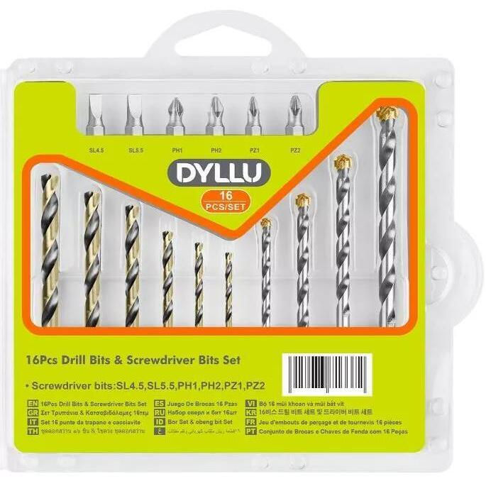 Тип: набор бит и свёрл / Материал: сталь / Количество предметов, шт.: 16 / Система хранения: пластиковый кейс