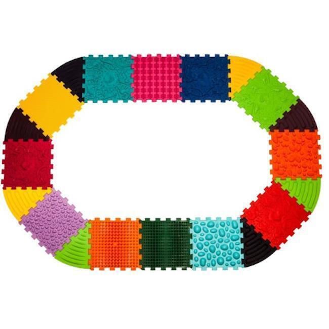 Треугольные наборы пазлов позволяют создавать волнистые дорожки, круги, узоры и перекрёстки. Это позволяет создавать дорожки вокруг мебели и углов, экономить место и, что самое главное, стимулировать детское воображение и интерес к занятиям на коврике.