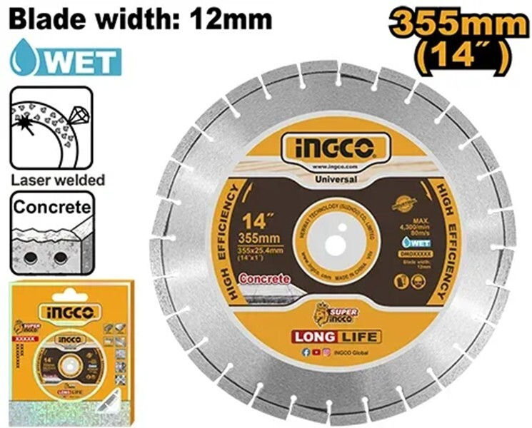 Тип: диск отрезной / Назначение: бетон / Диаметр диска, мм: 355 / Бренд: INGCO