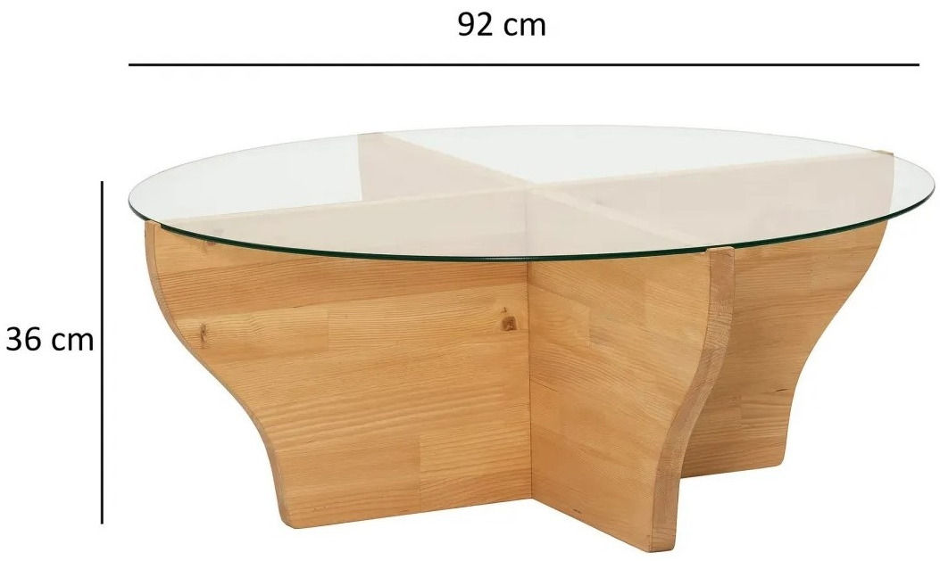Tip: măsuță de cafea / Înălţime, cm: 36 / Material: sticlă / lemn / Culoare: natural