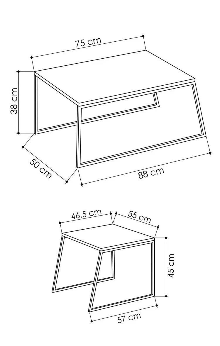 - Модель Pal Orta Sehpa, Alb 88x45x55cm, set